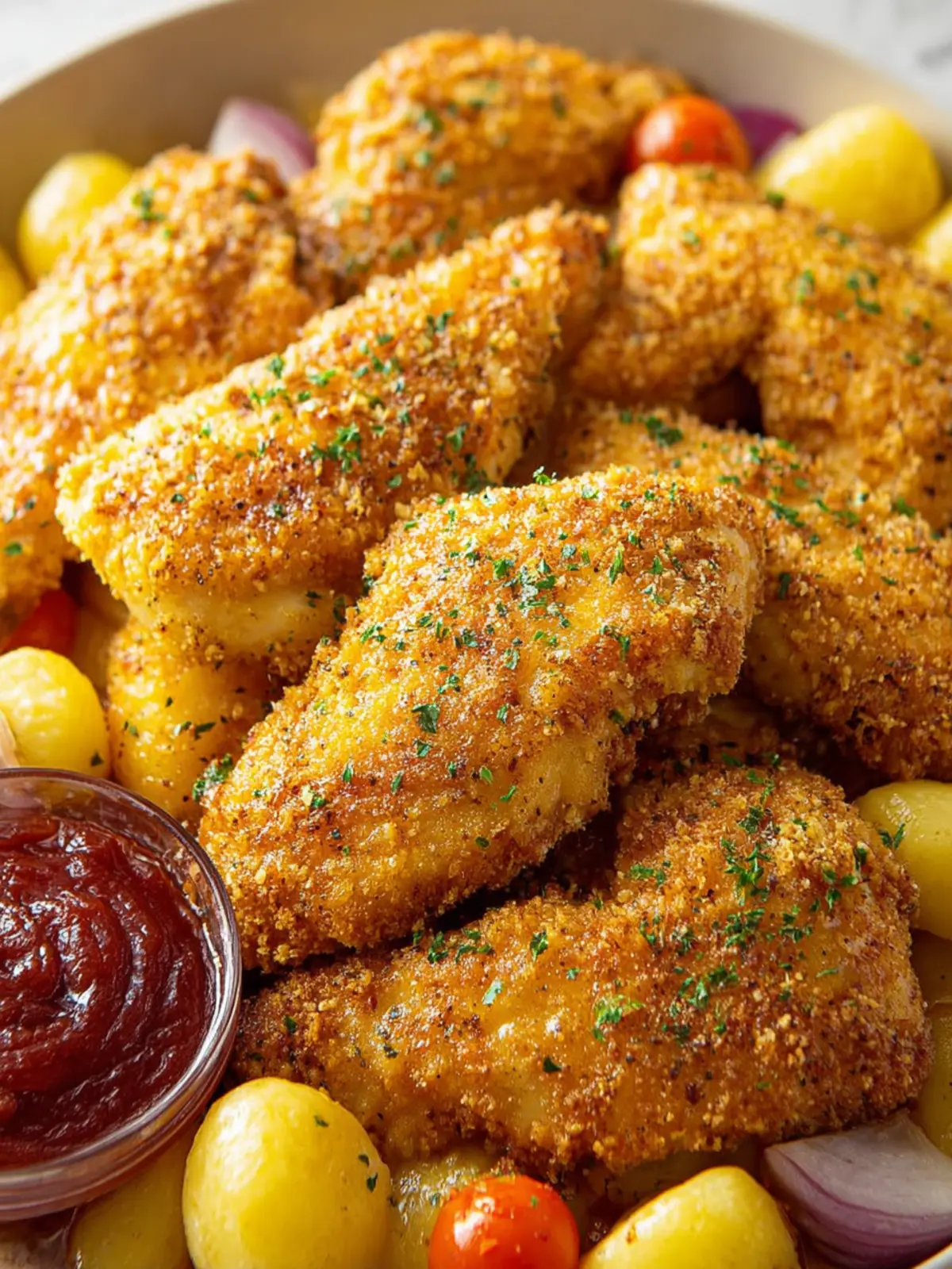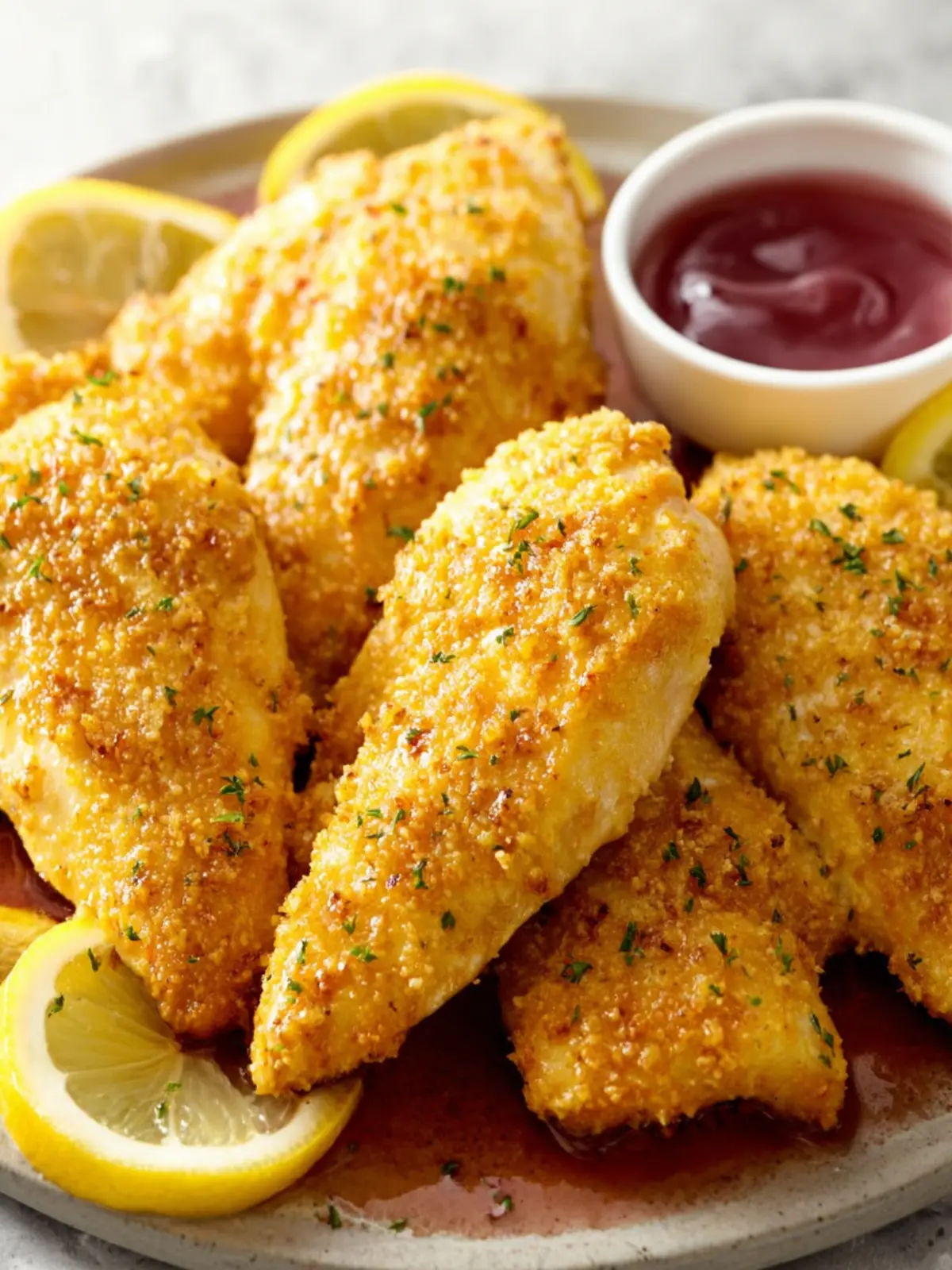 Deliciously crispy chicken tenders coated with Goldfish crackers for a fun twist!