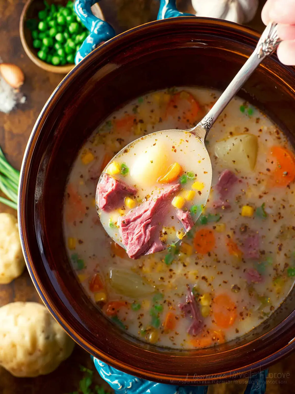 A hearty and creamy corned beef chowder made with tender vegetables and rich flavors.