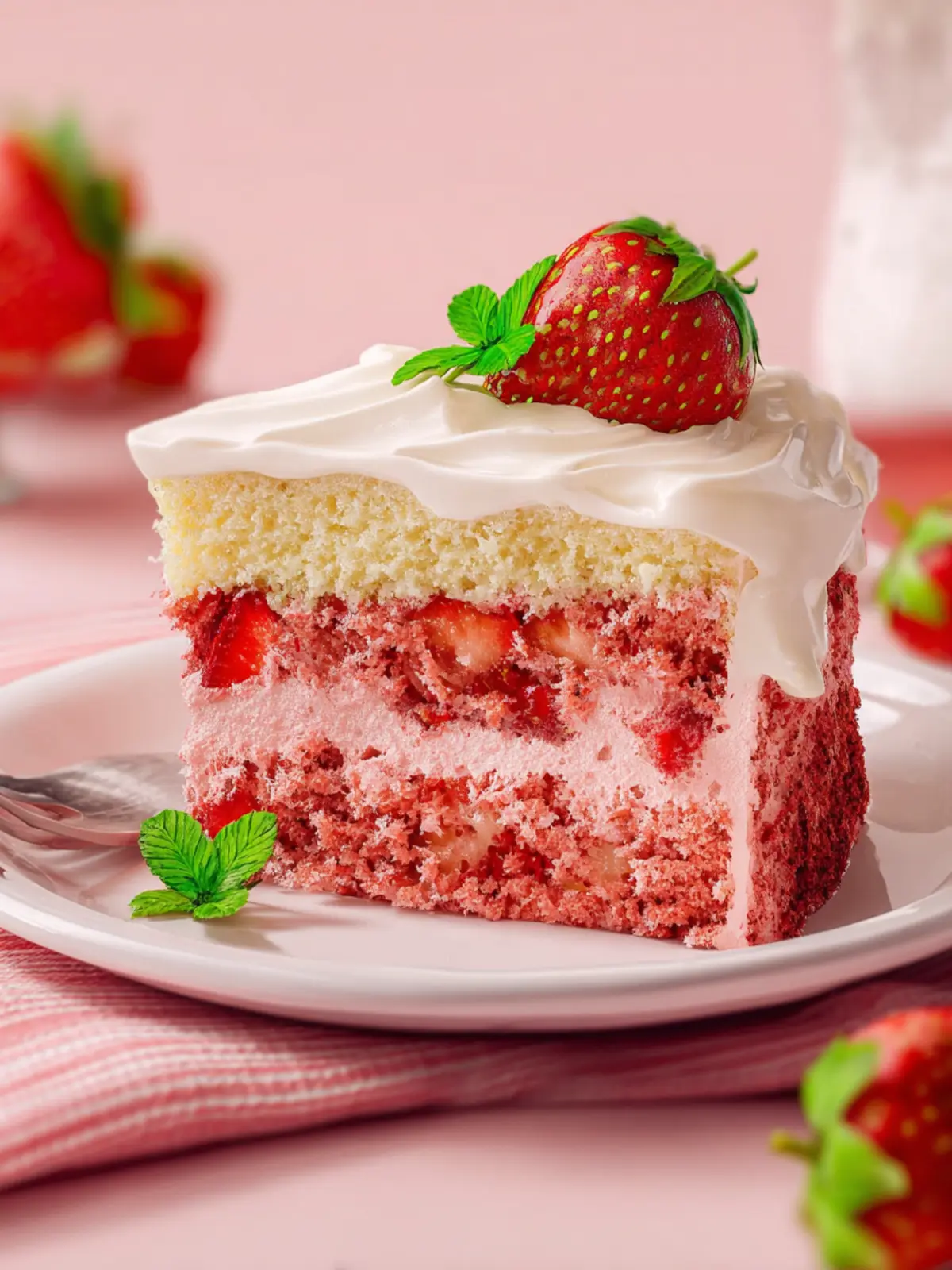 Imagine a sunny afternoon picnic where friends gather to share laughter and stories, with a glorious strawberry cake at the center of it all. This delightful treat is not just a dessert; it’s an experience that brings people together. The sweet fragrance of fresh strawberries fills the air as each slice reveals a moist, tender crumb, bursting with flavor.