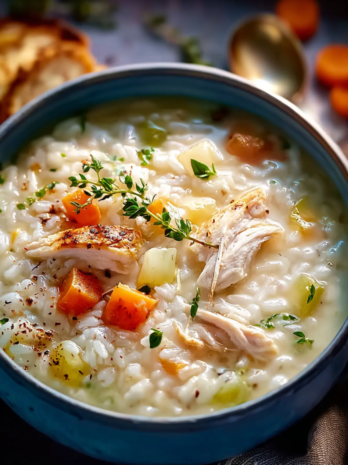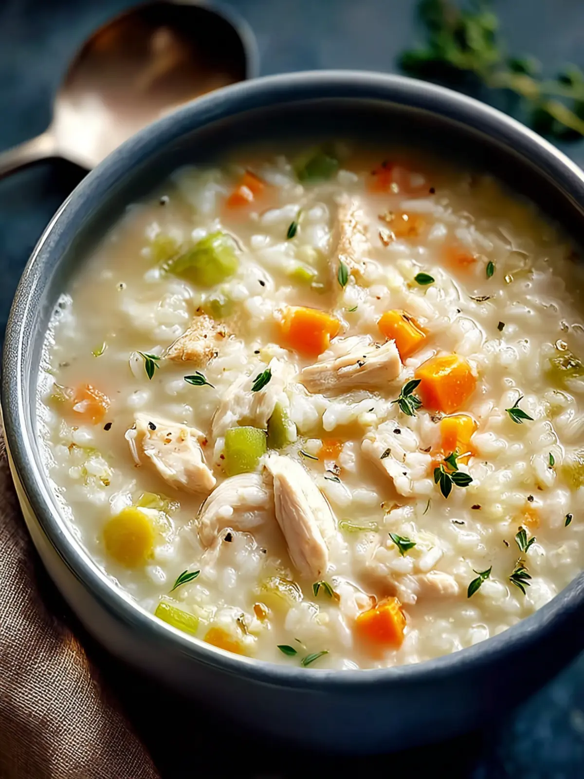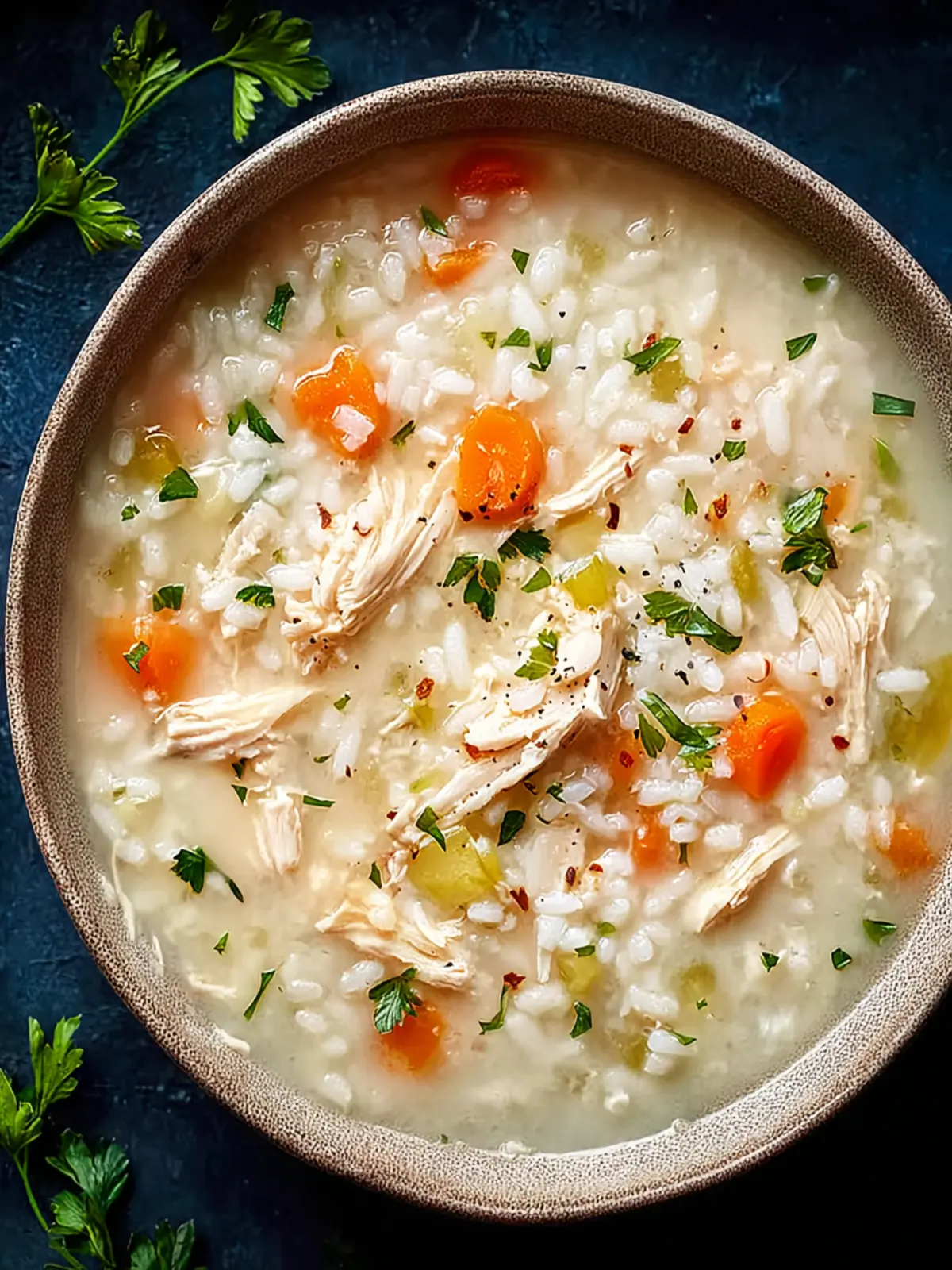 A comforting chicken rice soup that is packed with flavor and perfect for any meal.